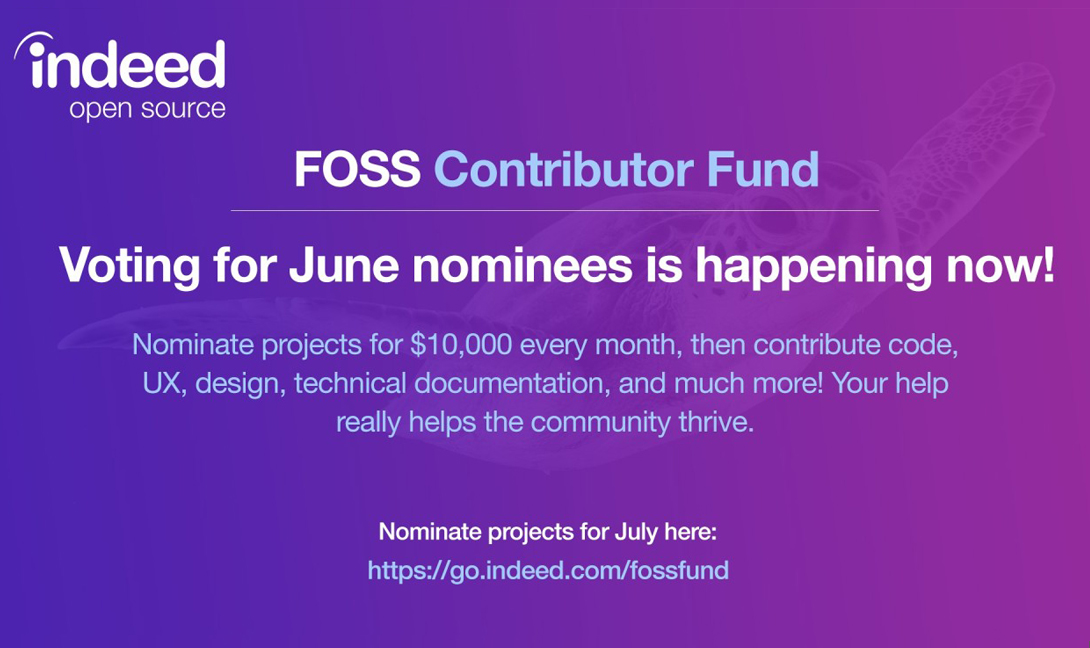 My time helping kickoff Indeed’s Free and Open Source Software Contributor Fund -- meant to empower Indeed's employees to nominate and vote on open source projects that the company uses, awarding monthly financial donations to the selected projects in support of the broader open source ecosystem.
